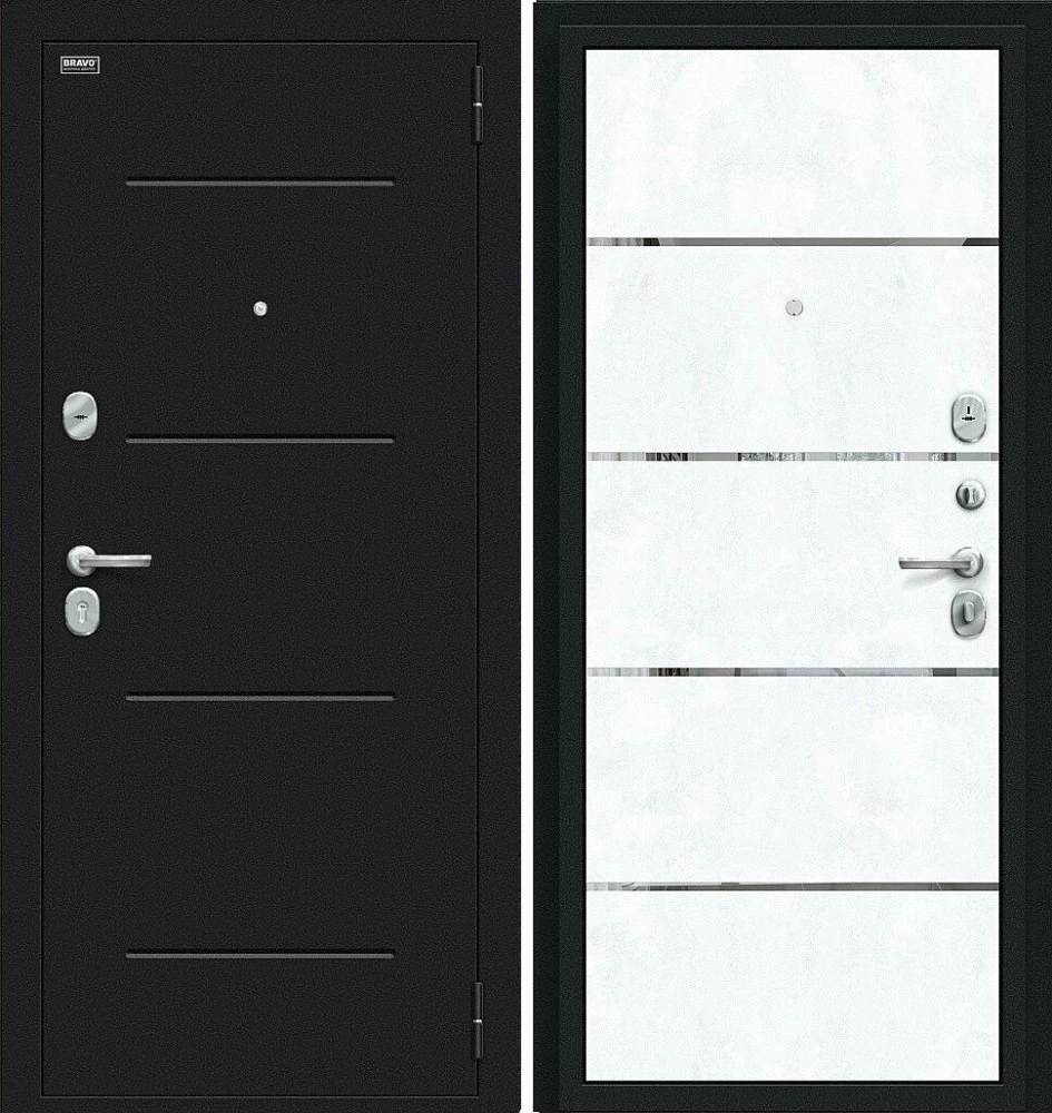 Надежная входная Дверь Браво Лайн Букле черное/Snow Art премиум класса по цене 31 833 руб. Большая толщина стали защитит от проникновения в ваш дом, квартиру или коттедж. Используется очень качественная фурнитура: замки, цилиндры, ручки, защелки. Покрытие и отделка двери изготовлено под внимательным контролем производителя. Дверь имеет долгий срок службы и гарантию.