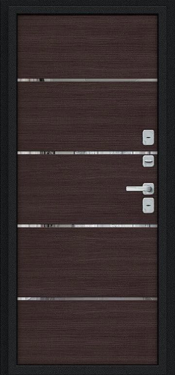 Надежная входная Дверь Браво Thermo Лайн/BChrome Букле черное/Wenge Melinga премиум класса по цене 48 013 руб. Большая толщина стали защитит от проникновения в ваш дом, квартиру или коттедж. Используется очень качественная фурнитура: замки, цилиндры, ручки, защелки. Покрытие и отделка двери изготовлено под внимательным контролем производителя. Дверь имеет долгий срок службы и гарантию.
